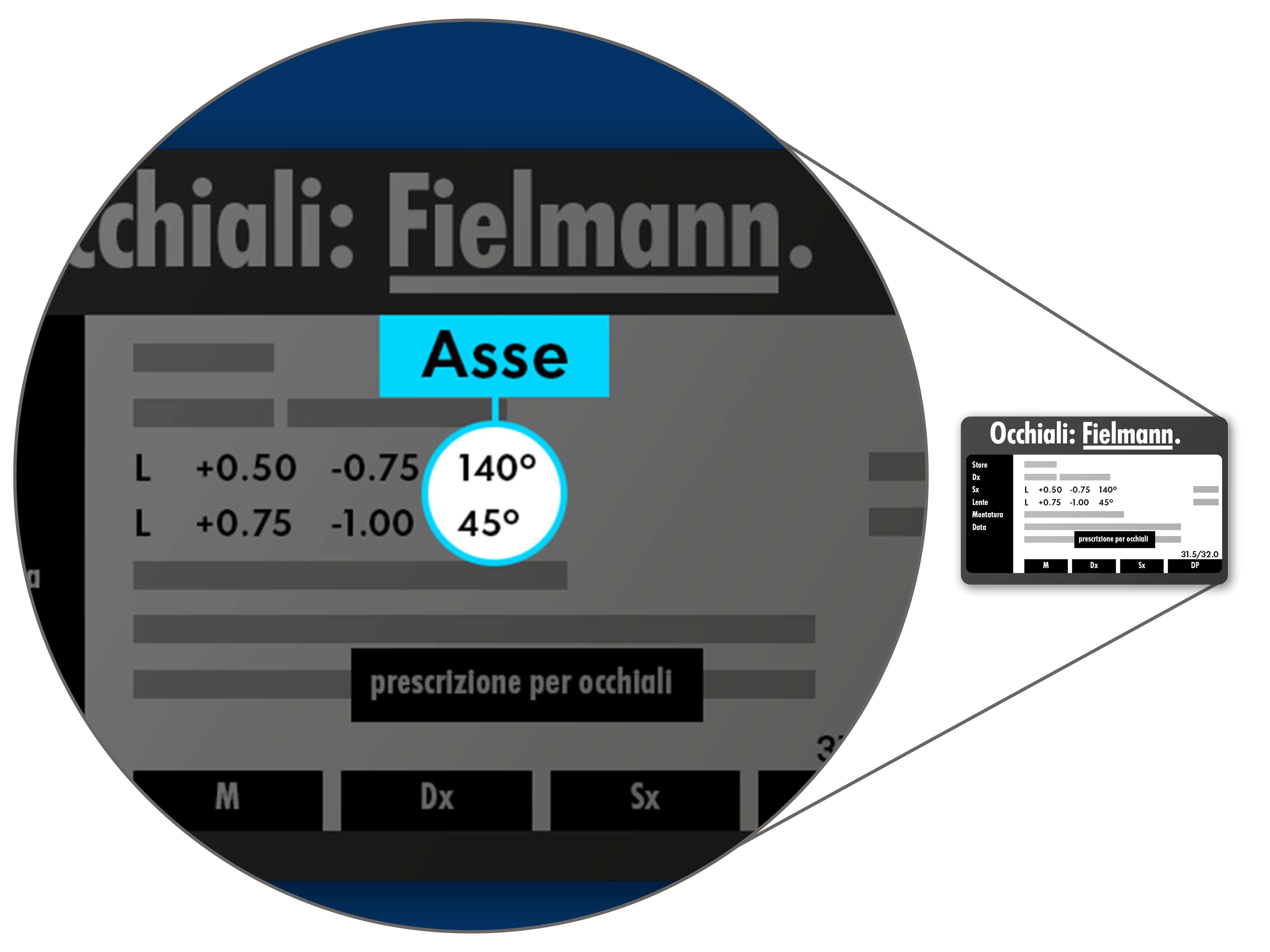 Asse (AX): posizione del cilindro in caso di astigmatismo