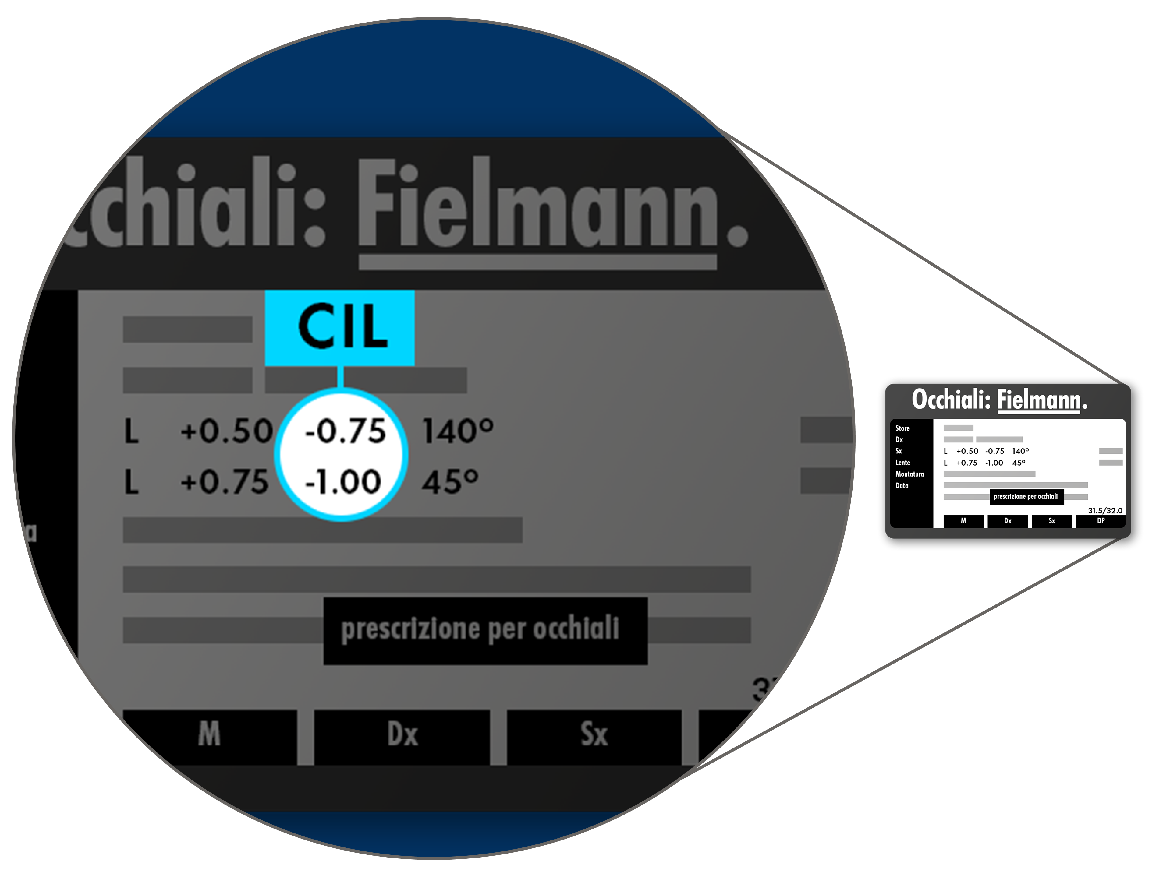 Il valore più facile da comprende tra i risultati di un esame della vista è quello della sfera, detto comunemente diottria. Ma visto che anche altri valori sono espressi in diottrie, questo termine crea un po’ di confusione.