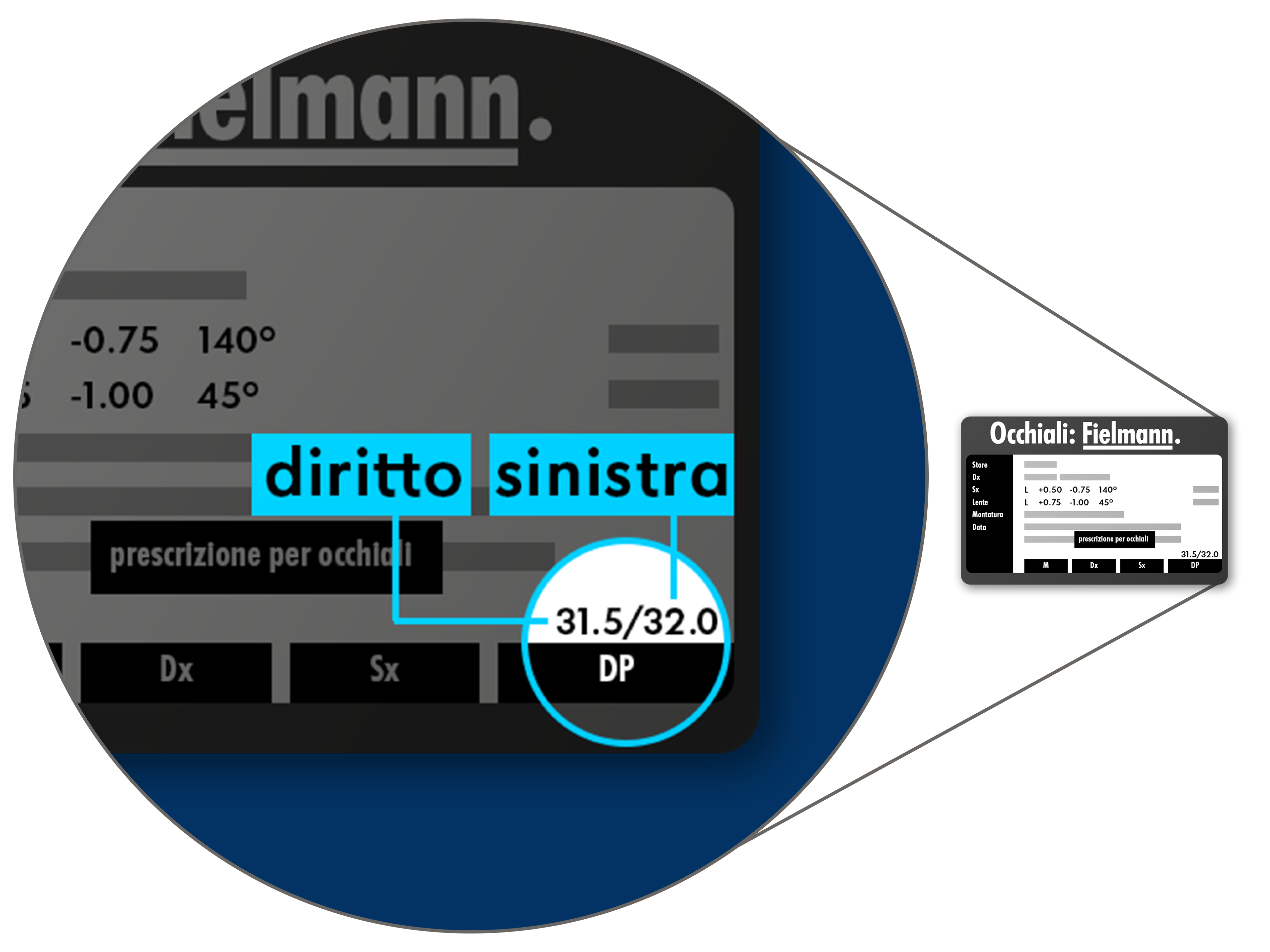 Distanza interpupillare (DP): distanza tra gli occhi individuale